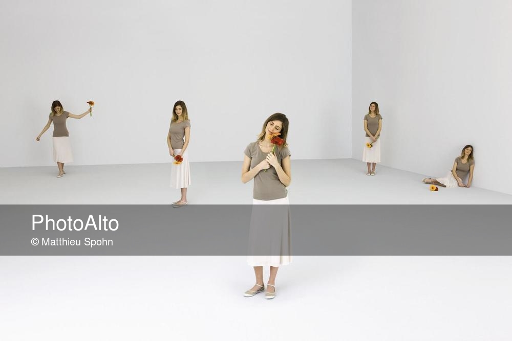 Absorbed woman in various poses with flowers, digital composite © Matthieu Spohn