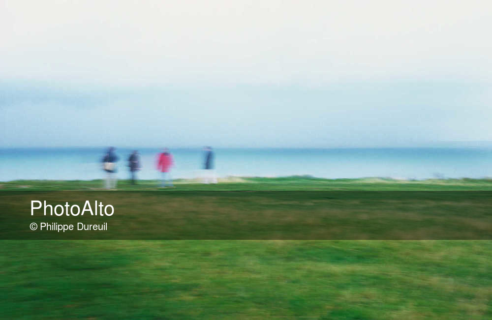 Adults standing looking at sea, blurred © Philippe Dureuil