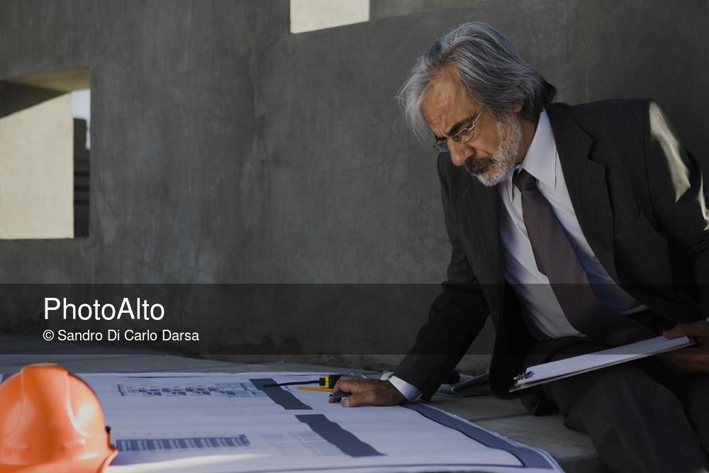 Architect studying blueprint at construction site © Sandro Di Carlo Darsa