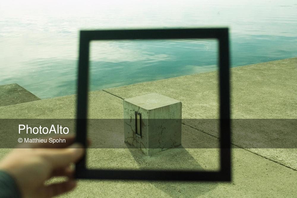 Bollard seen through hand held picture frame © Matthieu Spohn