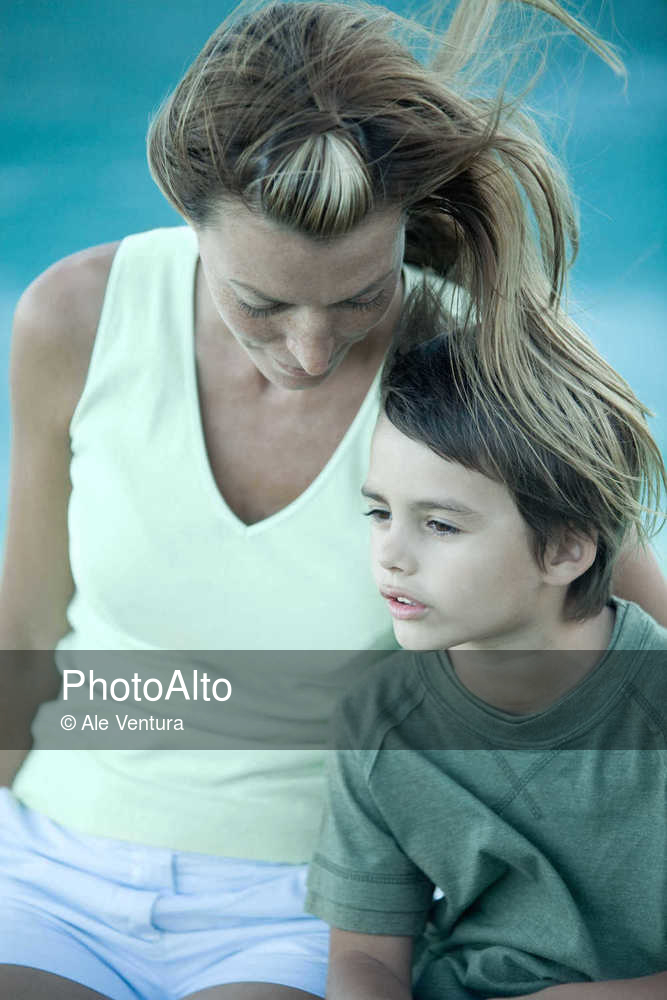 Boy and mother sitting in wind, portrait © Ale Ventura