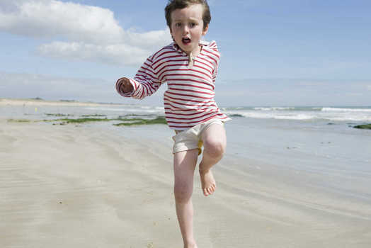Boy running around tree growing on beach © Milena Boniek