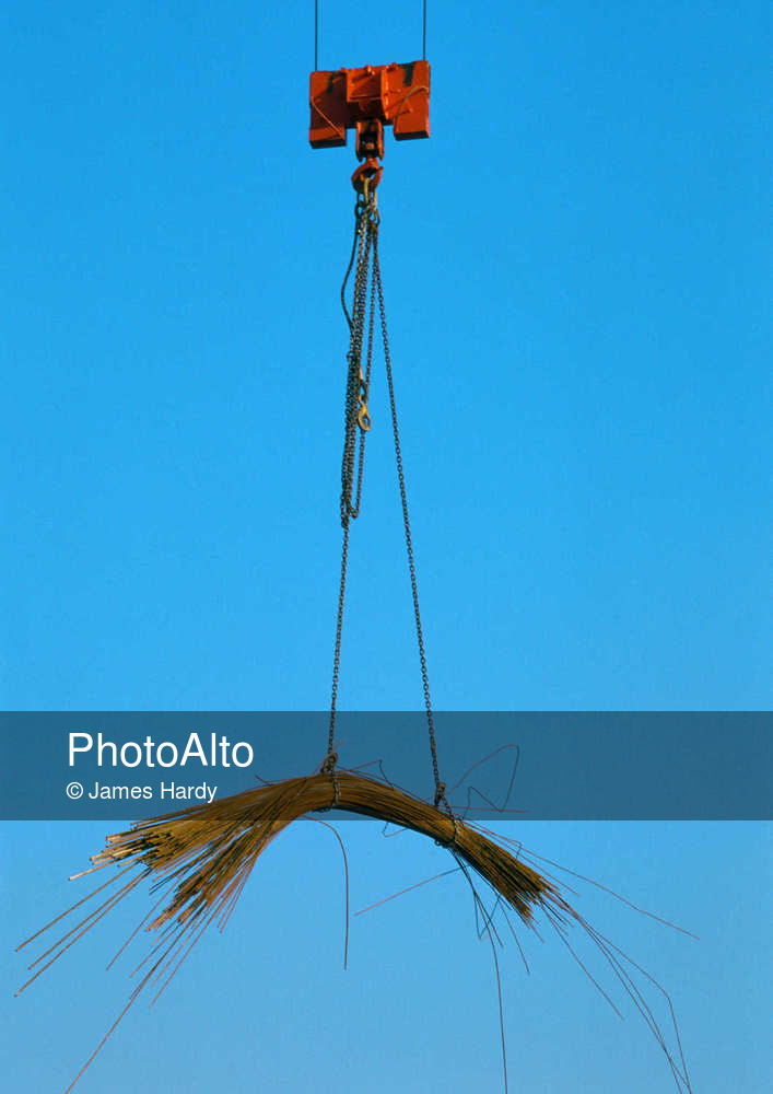 Building materials being lifted in mid-air © James Hardy