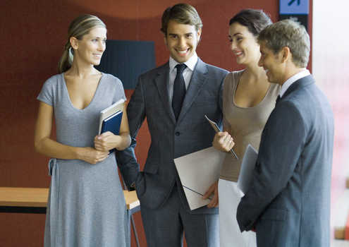 Businessman and businesswoman looking at cell phone © Eric Audras