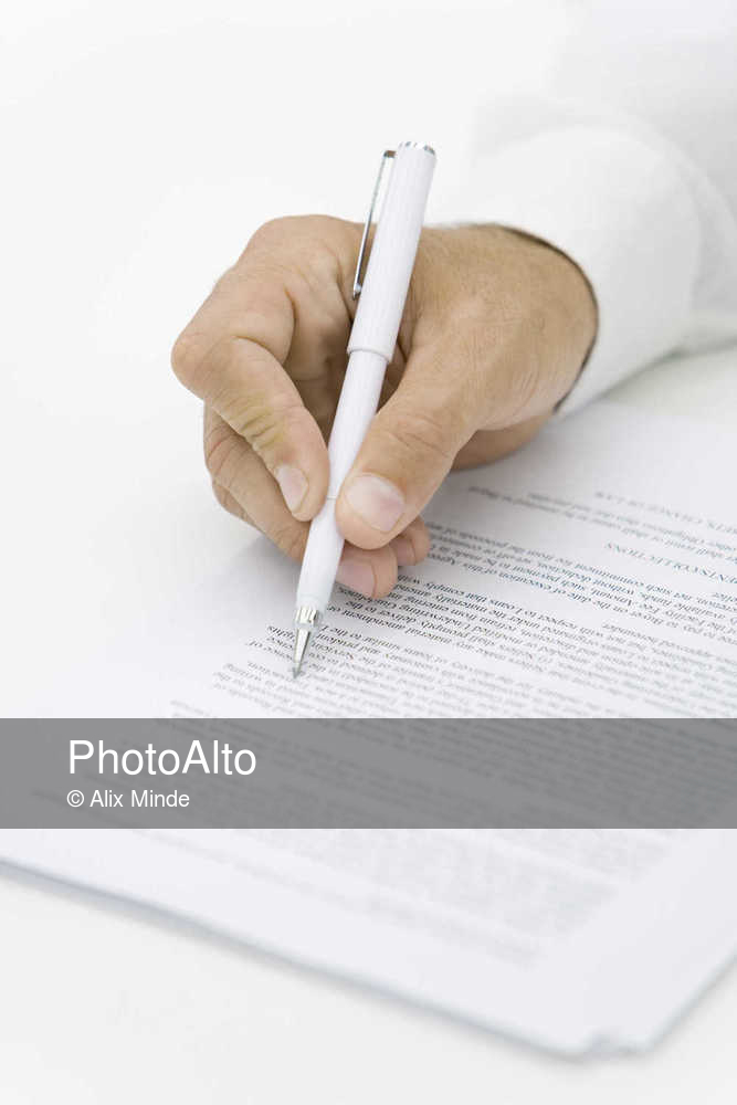 Businessman reviewing contract with pen, cropped view of hand © Alix Minde