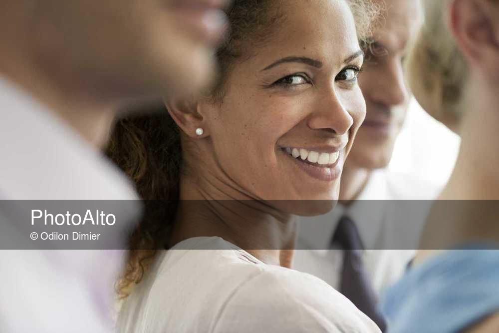 Businesswoman smiling over shoulder, portrait © Odilon Dimier