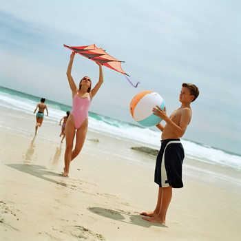 Child standing on beach with blue ocean in background © Frédéric Cirou