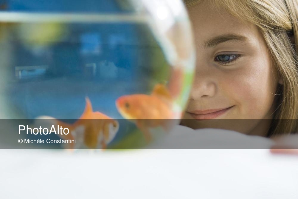 Child watching goldfish swim in fishbowl © Michèle Constantini