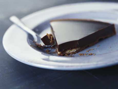 Chocolate chip cookie under glass cake cover © Anne-Sophie Bost