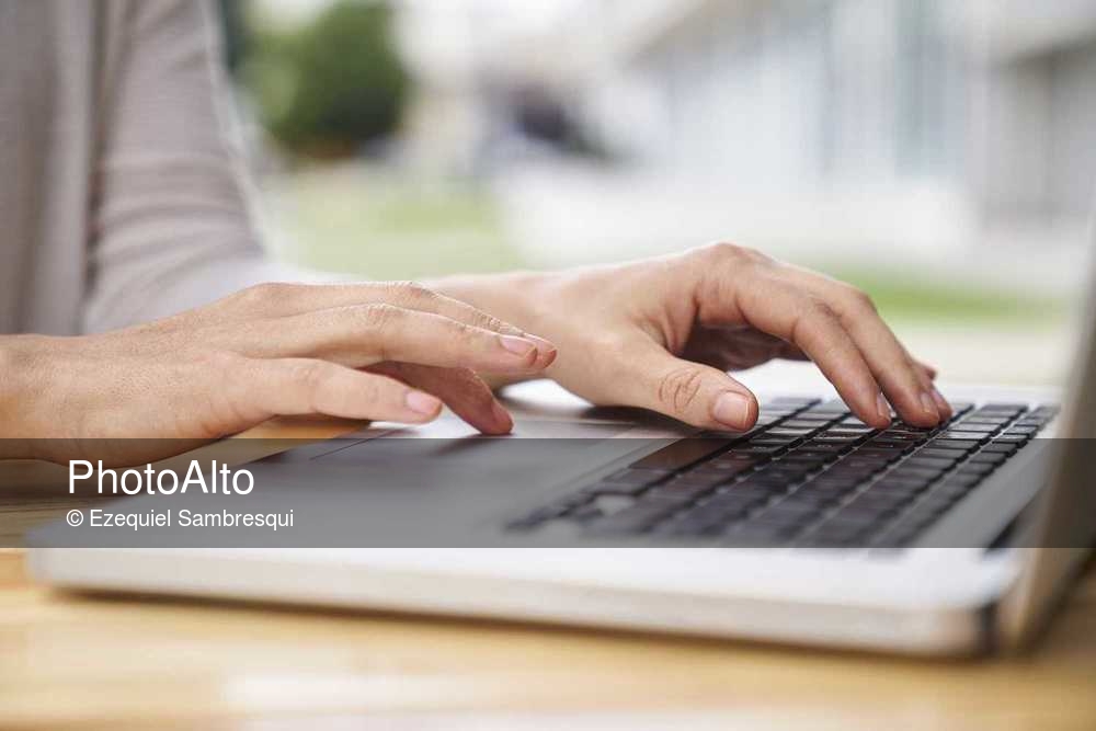 Close-up shot of woman's hands typing on a laptop computer © Ezequiel Sambresqui