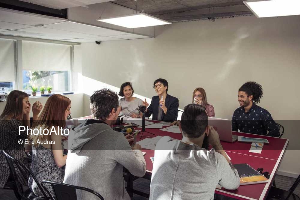 Colleagues meeting in casual office © Eric Audras