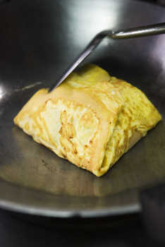 Cooking seafood stuffed omelette © Isabelle Rozenbaum