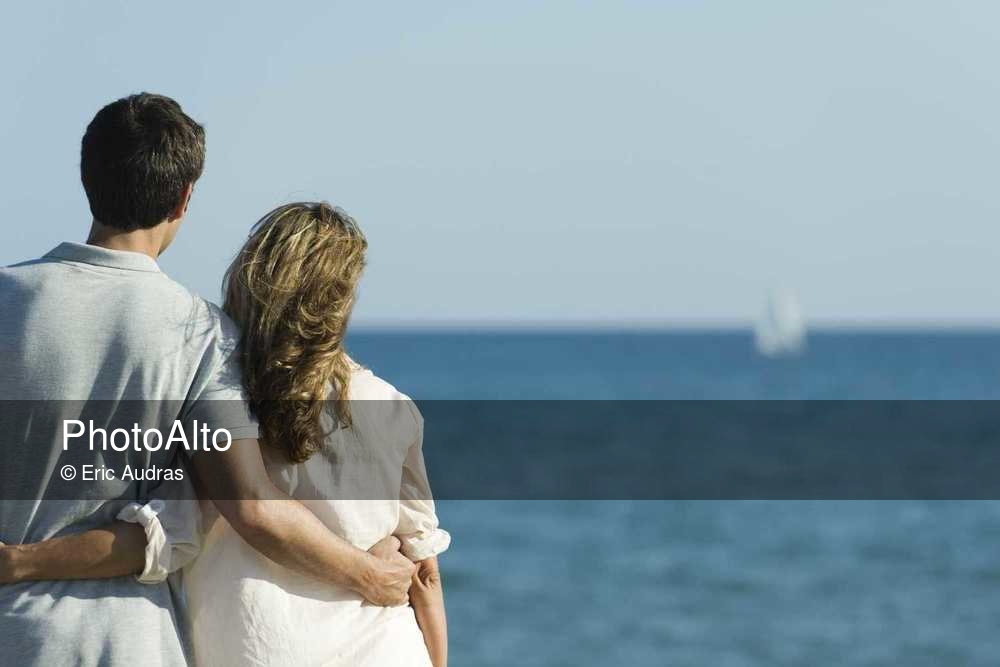 Couple at the beach, looking at sea, rear view © Eric Audras