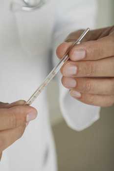 Doctor holding thermometer, close-up of hands © Ale Ventura