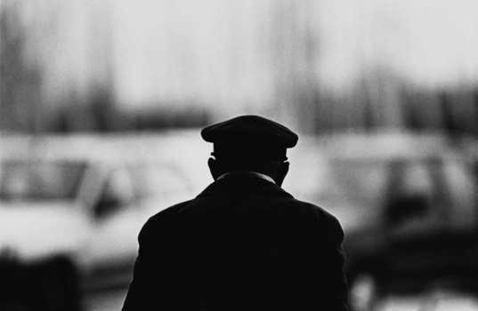 Elderly person's hand on table with glass of wine, b&w © Thierry Des Ouches