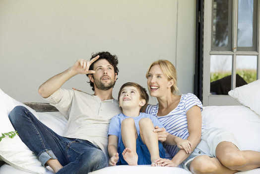 Family with one child looking at world globe together © Ale Ventura