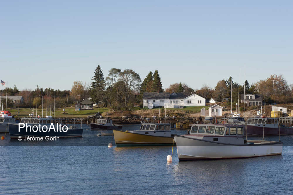 Fishing boats moored in marina near small fishing village in Maine, USA © Jérôme Gorin