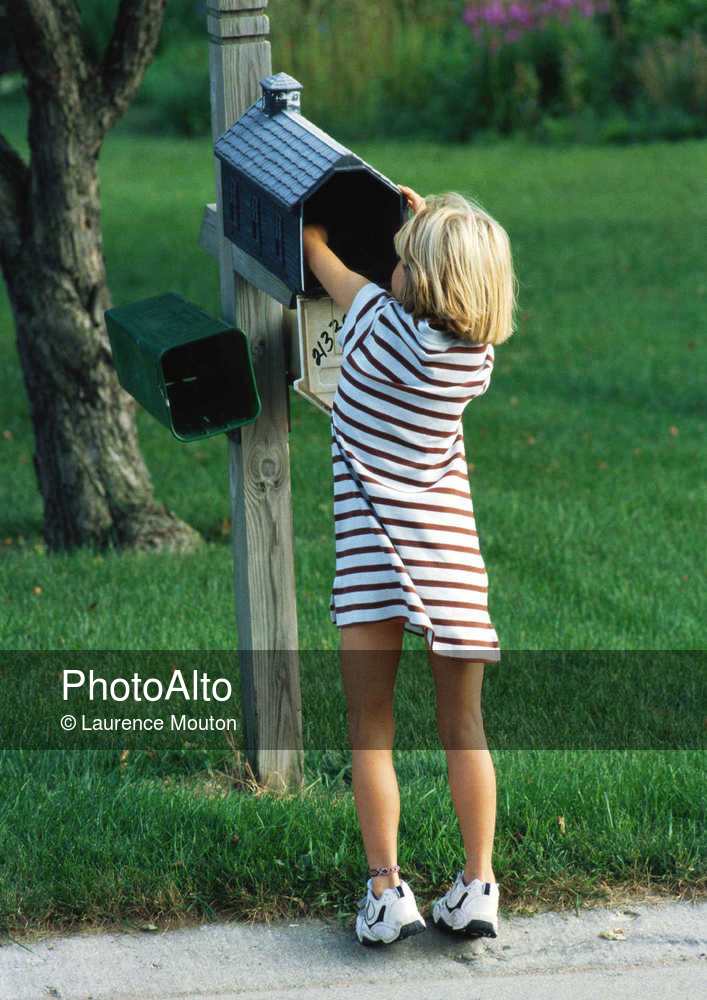 Girl with hand in mailbox, rear view © Laurence Mouton