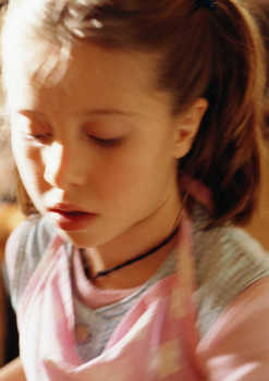 Girl with pigtails crouching outdoors © Patrick Mac Sean