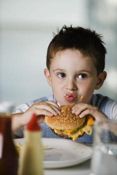 Little boy sitting at table eating © Jérôme Gorin