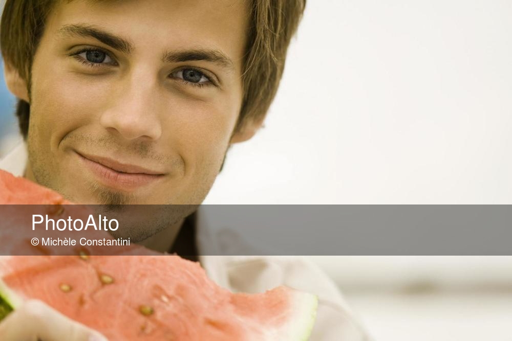 Man holding slice of watermelon © Michèle Constantini