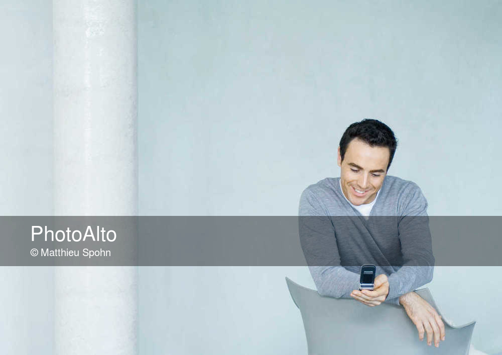 Man looking at cell phone, smiling © Matthieu Spohn