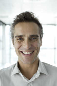 Man looking over shoulder at camera, portrait © Eric Audras