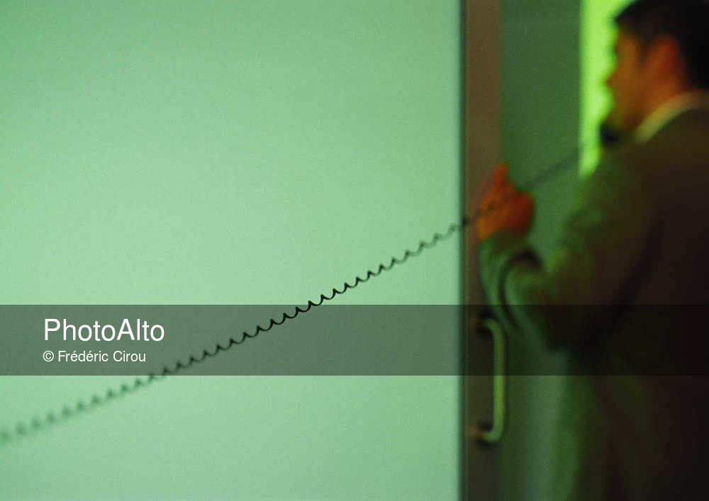Man standing in doorway, using telephone, blurred © Frédéric Cirou