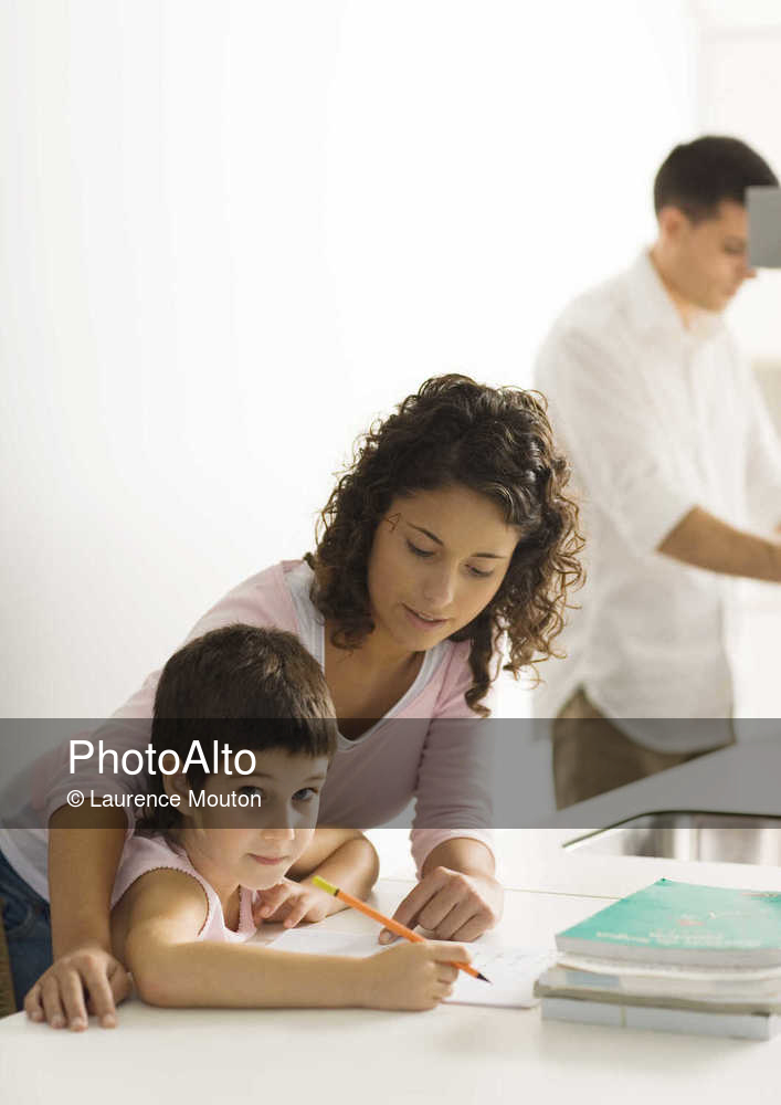 Mother helping child with homework © Laurence Mouton