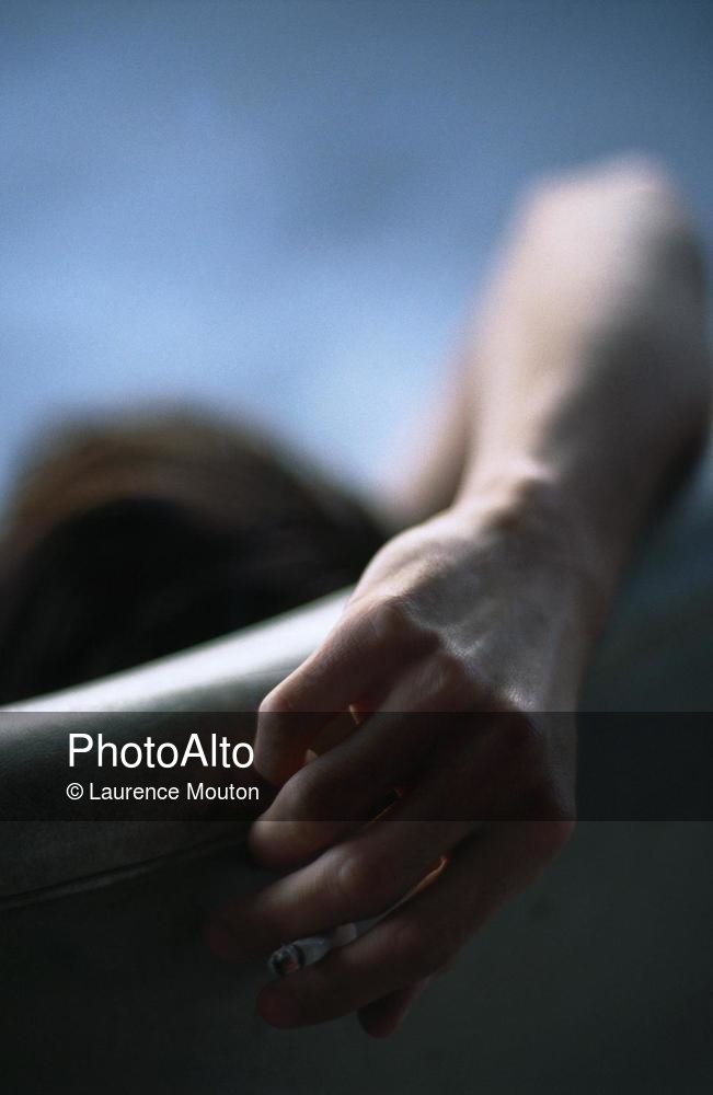 Person sitting in armchair, holding cigarette behind head © Laurence Mouton