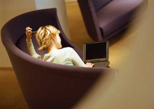 Pilot wearing headphones, rear view, close-up © Laurence Mouton