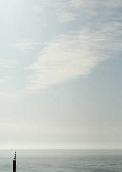 Stones stacked on wooden pole in body of water © Milena Boniek