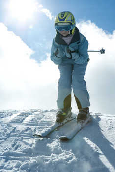 Teenage girl wearing ski-suit and goggles, looking away © Laurence Mouton