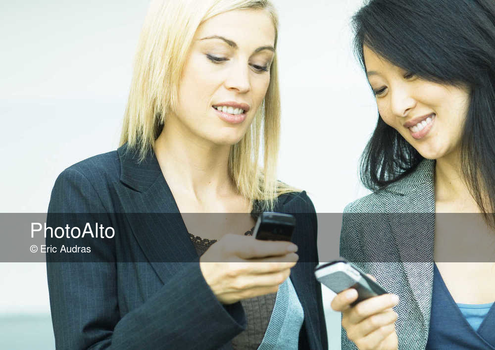 Two businesswomen looking at their cell phones © Eric Audras