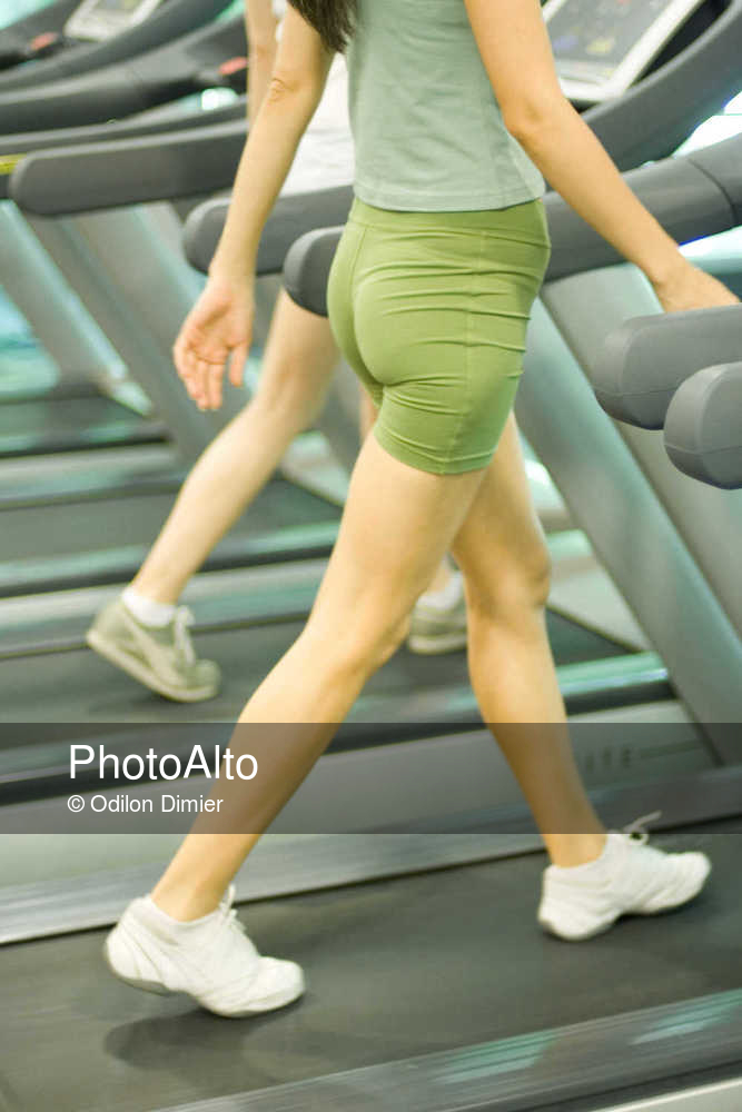 Two women walking on treadmills, chest down © Odilon Dimier