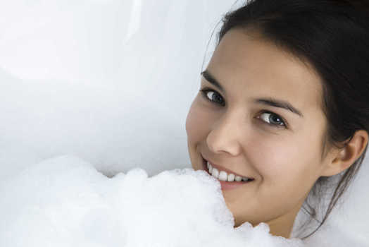 Woman relaxing in bath, portrait © Frédéric Cirou