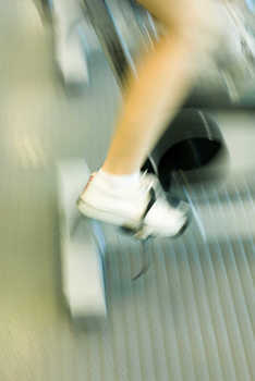 Woman sitting on stationary exercise bike © Odilon Dimier