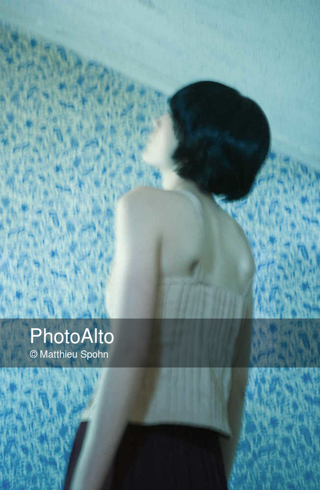Woman standing, facing wall, low angle view © Matthieu Spohn