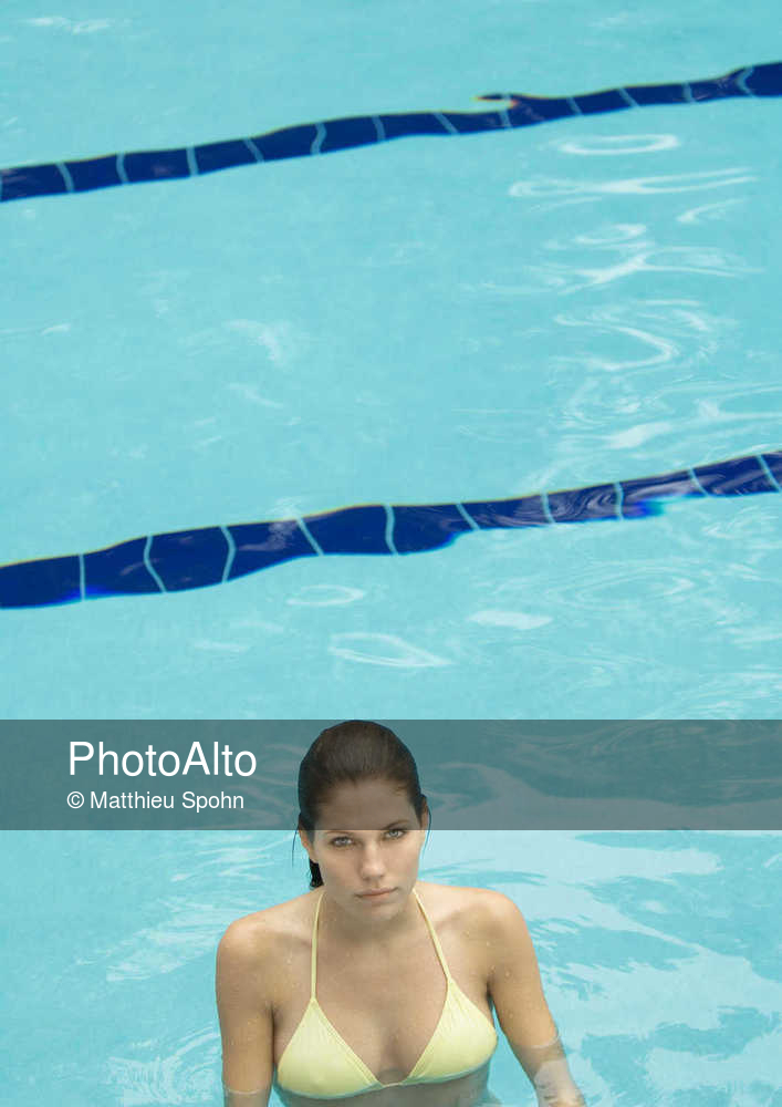 Woman standing in pool, looking at camera © Matthieu Spohn