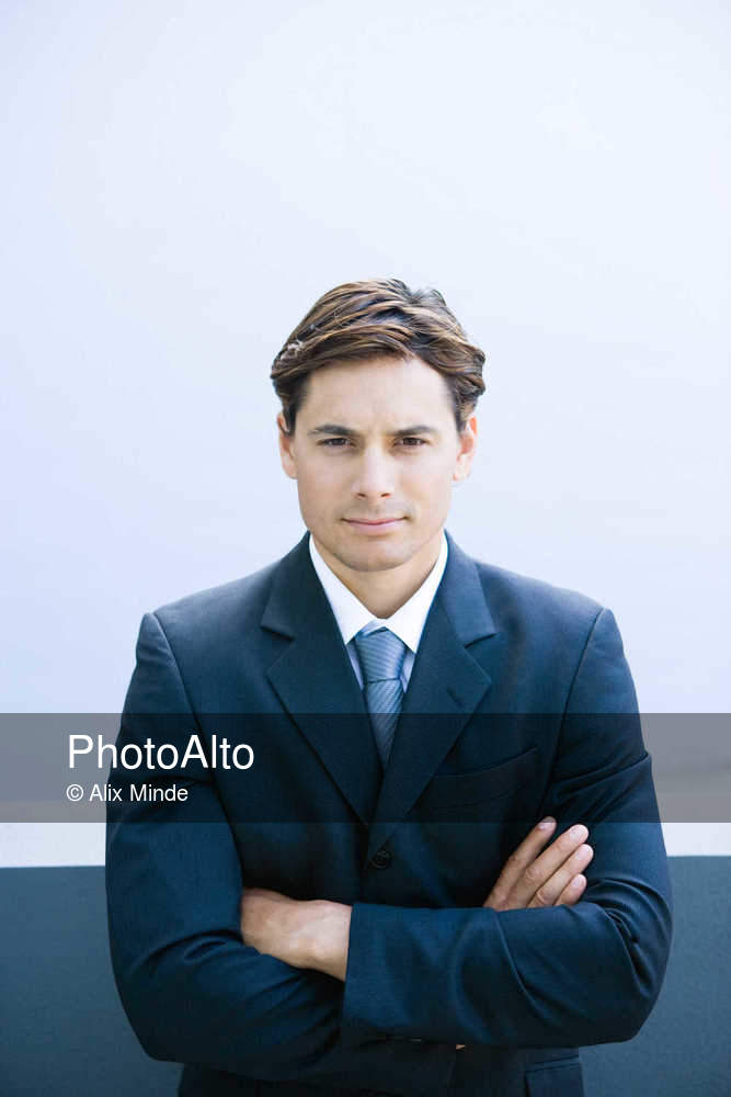 Young businessman, arms folded, looking at camera, portrait © Alix Minde