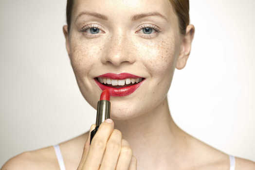Young woman applying lipstick, portrait © Milena Boniek