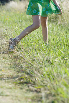 Young woman standing in rural field with legs apart, cropped view © Laurence Mouton