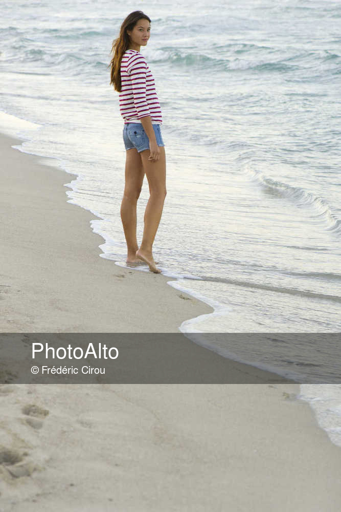 Young woman standing on beach © Frédéric Cirou
